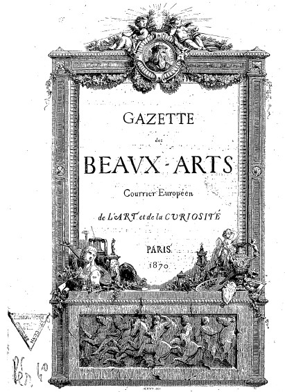 Titre : La Gazette des Beaux-Arts Titre original : Jusqu'en 1906 « Courrier Européen de l'Art et de la Curiosité » Type de document : texte imprimé Auteurs : Édouard Houssaye, Fondateur ; Charles Blanc, Fondateur ; Charles Blanc, Directeur de publication ; Théodore Reinach, Directeur de publication ; Georges Wildenstein, Directeur de publication ; Daniel Wildenstein, Directeur de publication ; Charles Blanc, Rédacteur en chef Editeur : Paris : Gazette des beaux-arts Année de publication : 1859-2002 Autre Editeur : New-York [Etats-Unis] : G. Wildenstein Note générale : « Paris ». Date de parution.